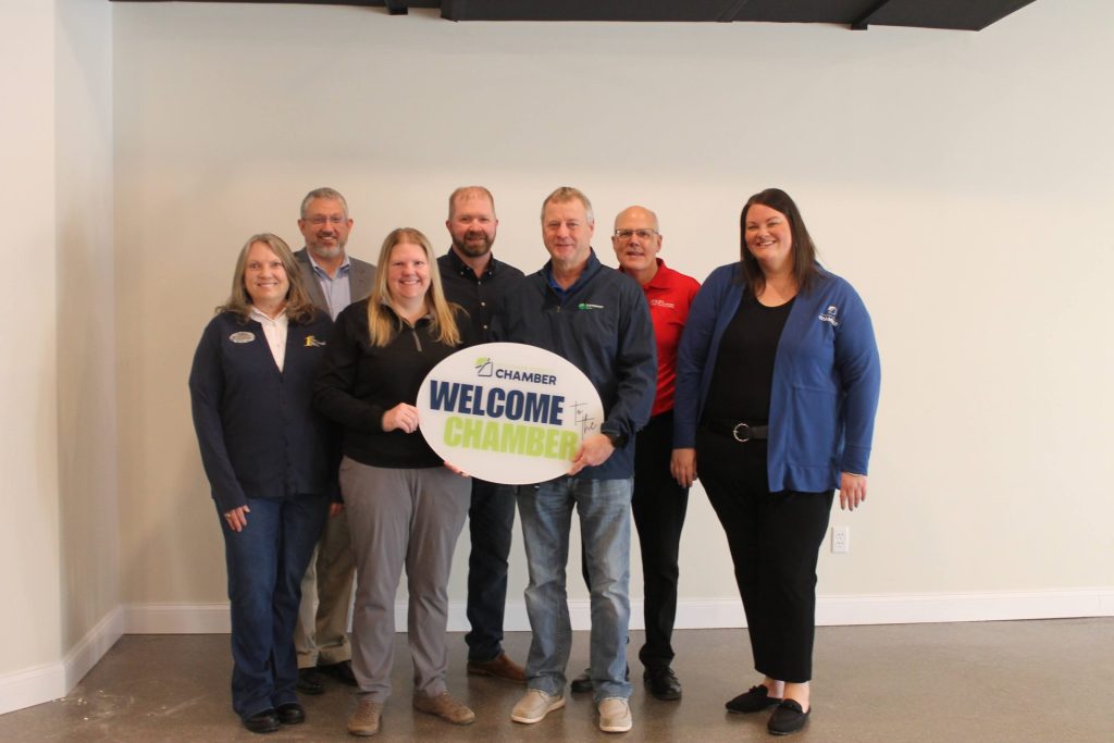 Pictured (back row, left to right): Adam Butts, Co-Owner Tim Schuette, and Chamber Ambassador Michael Wall (HSHS St. Anthony’s Memorial Hospital Foundation