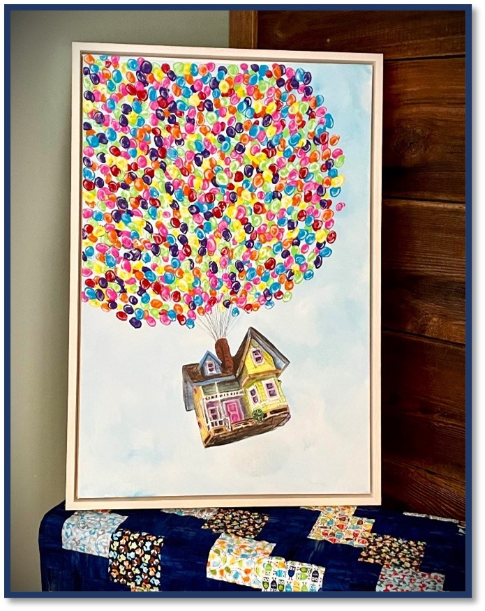 The main feature in this year’s auction is a “Up”-Inspired Community Masterpiece (2’x3’). This painting was started by local artist, Danielle Kingery-Harden. She donated her time and talent to create the iconic house from Pixar’s movie, “Up!”. Community members young and old added their fingerprints to the painting, creating the infamous balloons that make this painting take flight.