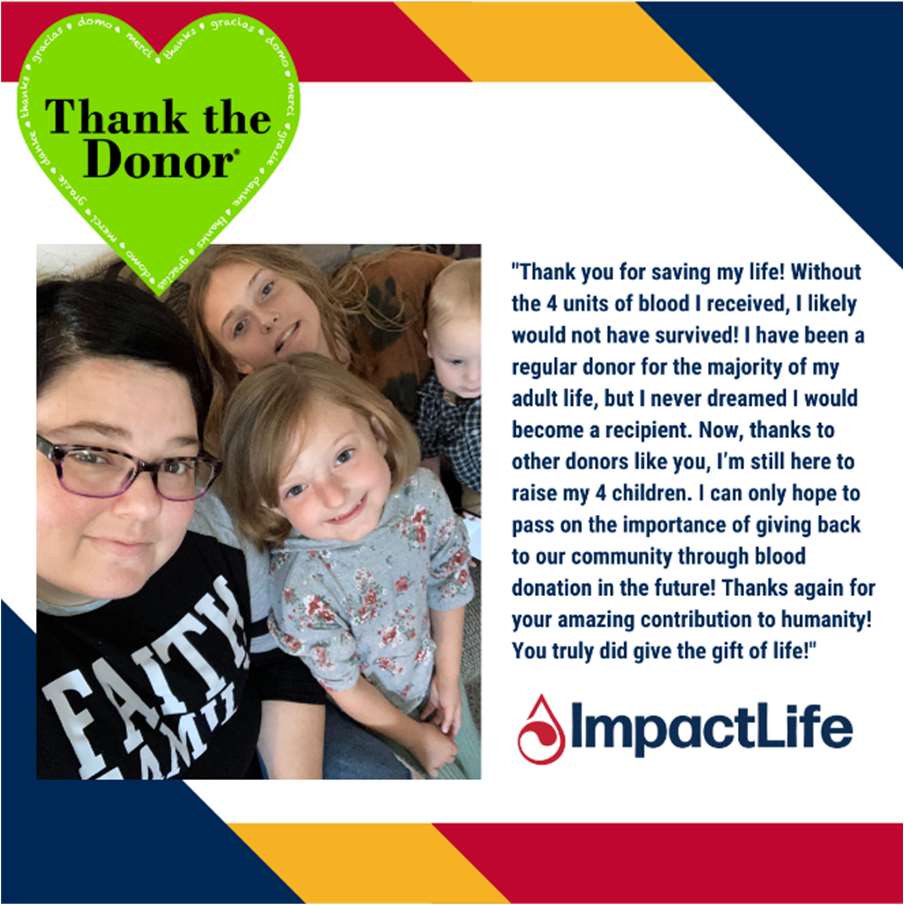 ImpactLife is a not-for-profit community organization providing blood services to more than 120 hospitals and emergency services providers in Illinois, Iowa, Missouri, and Wisconsin, as well as resource sharing partners across the country. (For a map of the ImpactLife service region, see www.bloodcenter.org/hospitals.) ImpactLife operates 22 Donor Centers and holds approximately 5000 mobile blood drives annually to provide blood components needed for patient transfusions at hospitals throughout our region.