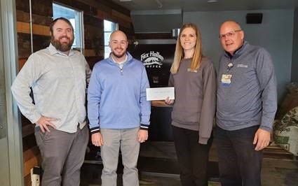 Photo Caption: As part of Fox Holler Coffee’s “Heart of the Holler” program, a portion of all bagged coffee sales during the month of October purchased from either of the Fox Holler Coffee drive-thru locations were donated to the Women’s Wellness Center in support of Breast Cancer Awareness, raising $500. Shown left to right: Danny Borries and Seth Wilson, Fox Holler owners; Ashley Davis, St. Anthony’s Women’s Wellness nurse navigator, and Michael Wall, St. Anthony’s director of philanthropy.