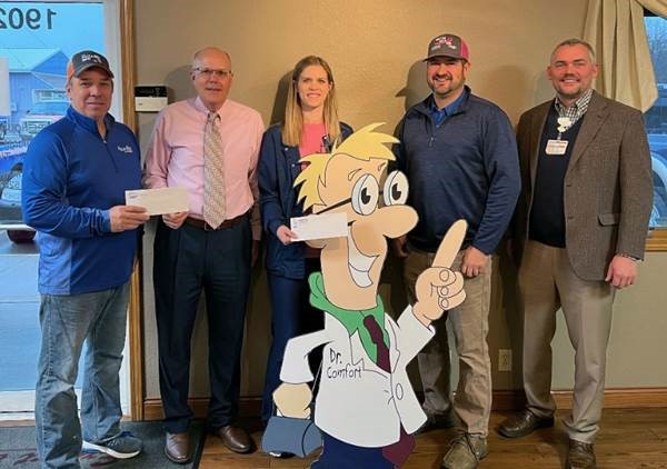 Photo Caption: Jansen’s Heating and Air and Pizza Man raised funds through a combined effort in October. Pizza Man donated $550 to the campaign through donating $1 for every large pizza sold on Wednesdays in October through Pizza Man’s “Pizza for a Purpose” promotion. Jansen’s not only donated a portion of every October service call, indoor air quality product and new complete heating/AC system installation, but also matched Pizza Man’s donation dollar-for-dollar for a total donation of $5,820. Shown left to right: Greg Addis, owner of Pizza Man; Michael Wall, St. Anthony’s director of philanthropy; Ashley Davis, St. Anthony’s Women’s Wellness nurse navigator; Troy Jansen, owner and general manager of Jansen’s Heating and Air; and Chad Markham, St. Anthony’s president and CEO.