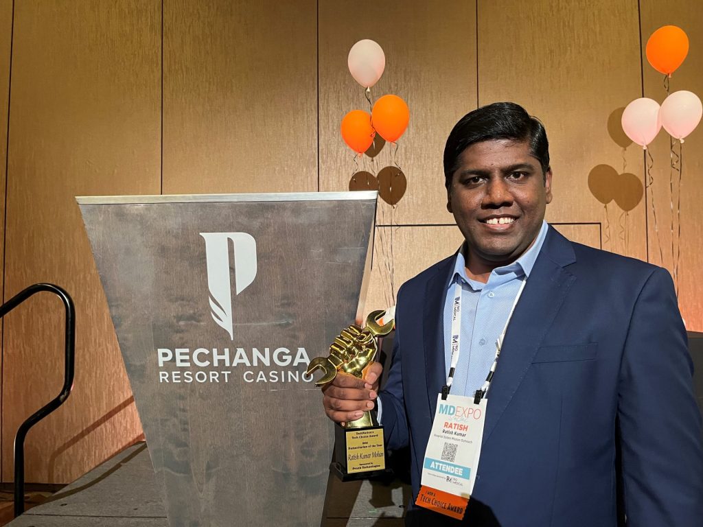SPRINGFIELD, ILLINOIS – Ratish Kumar, a biomedical engineer at Hospital Sisters Mission Outreach, accepted the TechNation 2025 Humanitarian of the Year award at the annual MDExpo in Temecula, California, on Wednesday, April 16. Kumar was selected for the honor from nominees throughout the United States in the fields of bioengineering, administration and education.