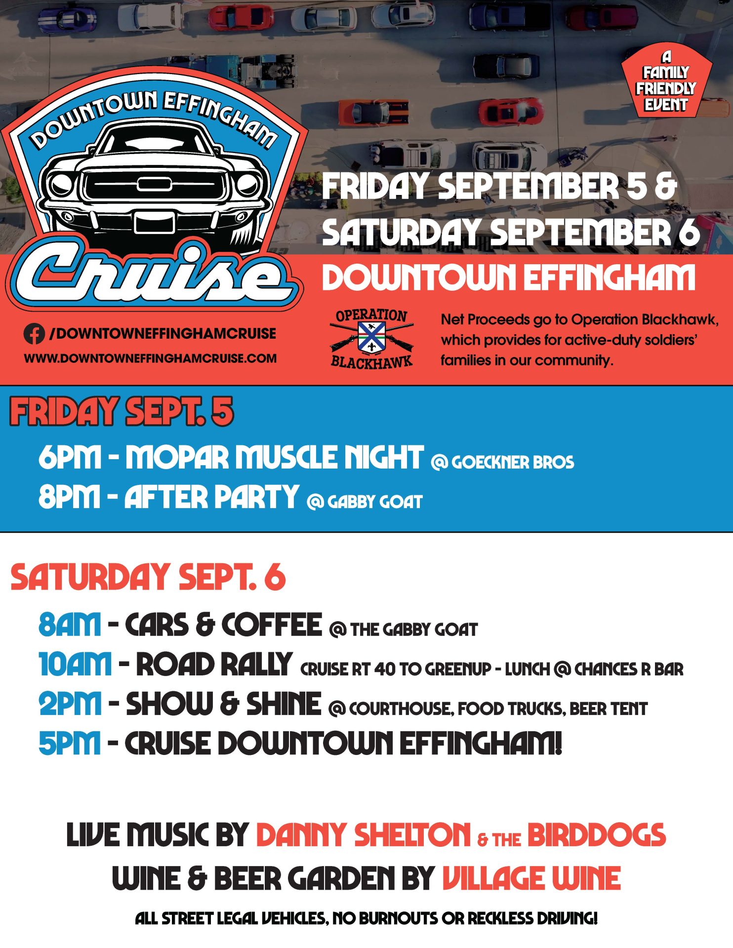 Join us as a sponsor for the Downtown Effingham Cruise, a thrilling event for a meaningful cause. This year, all proceeds will directly support Operation Blackhawk, an initiative dedicated to providing essential assistance to the families of our brave active-duty soldiers.