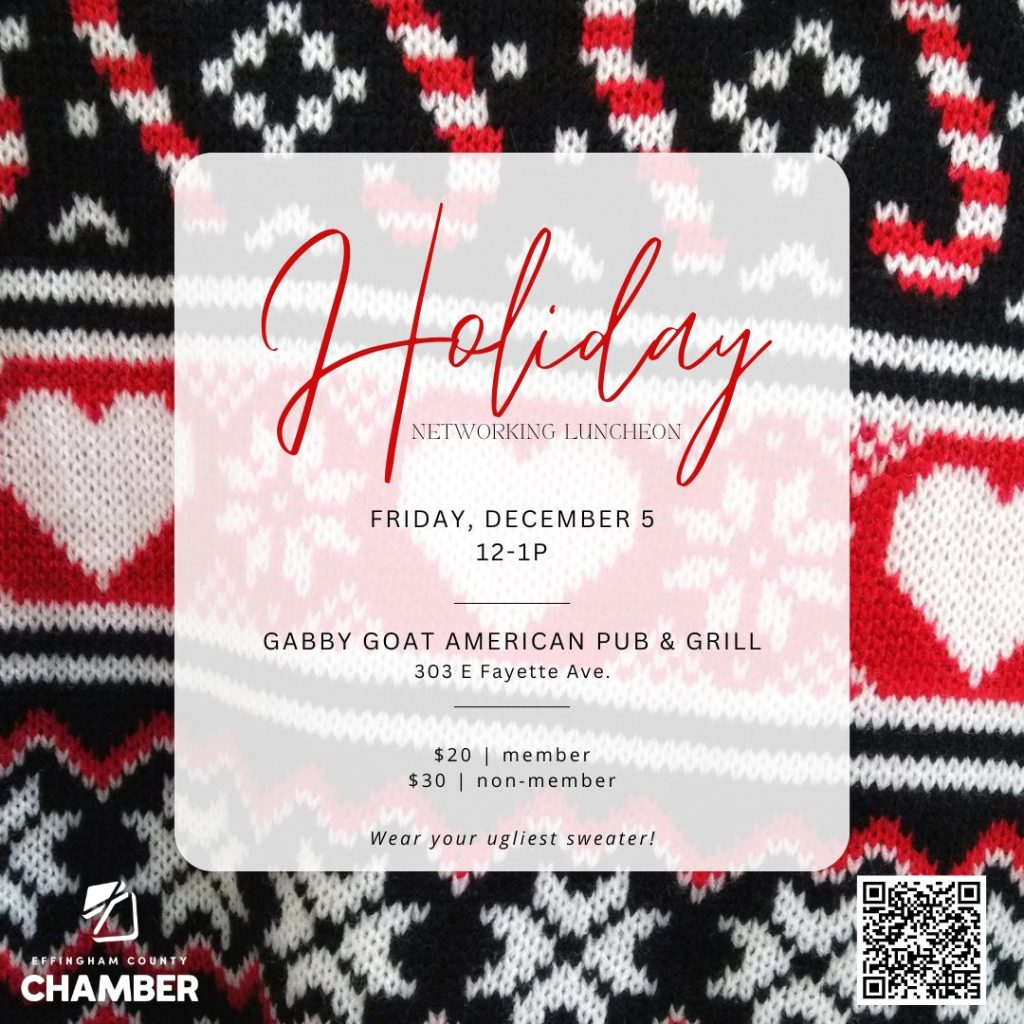 Celebrate the season with your fellow Chamber members – Enjoy lunch, networking, and plenty of holiday cheer.