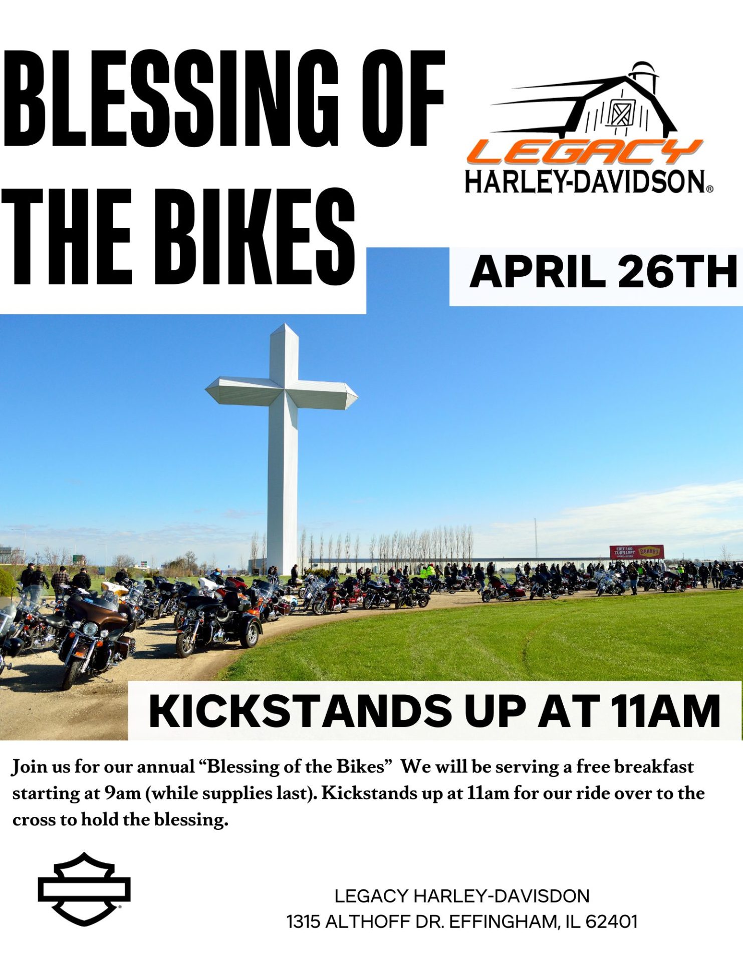 Join us for our annual “Blessing of the Bikes” We will be serving a free breakfast starting at 9am (while supplies last).