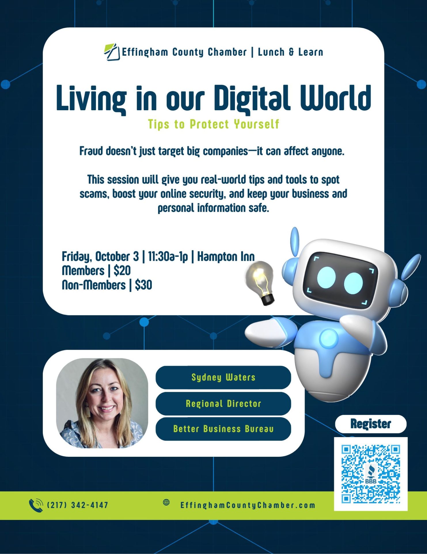 Join Sydney Waters with the Better Business Bureau (Greater Missouri & Southern Illinois) for a session on today’s top scam tactics, how fraud affects consumers and businesses, and practical steps to boost digital security. Attendees will walk away with tools to spot red flags and protect both personal and professional information.