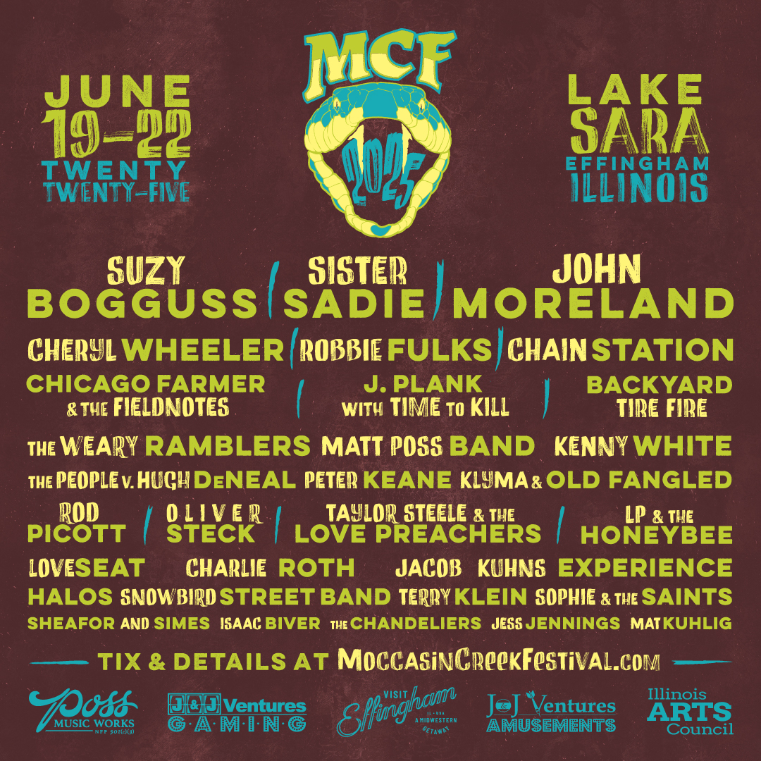 Moccasin Creek Festival is an annual 4-day music festival, which celebrates other arts and crafts as well. It takes place at beautiful Lake Sara near Effingham, IL.
