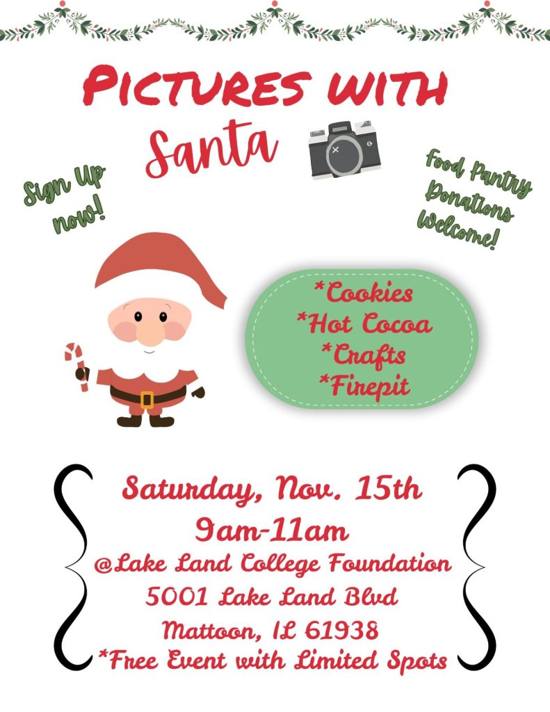 Join us on November 15th from 9–11 AM for pictures with Santa hosted by the Lake Land College Foundation!