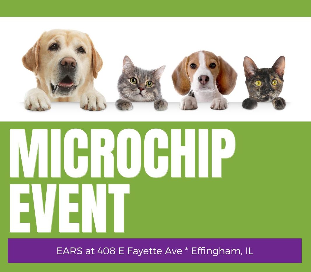On-site microchipping at the EARS office in Effingham 10a-12p, No appointment needed No geography or number limit Cost: No cost *Freewill donation